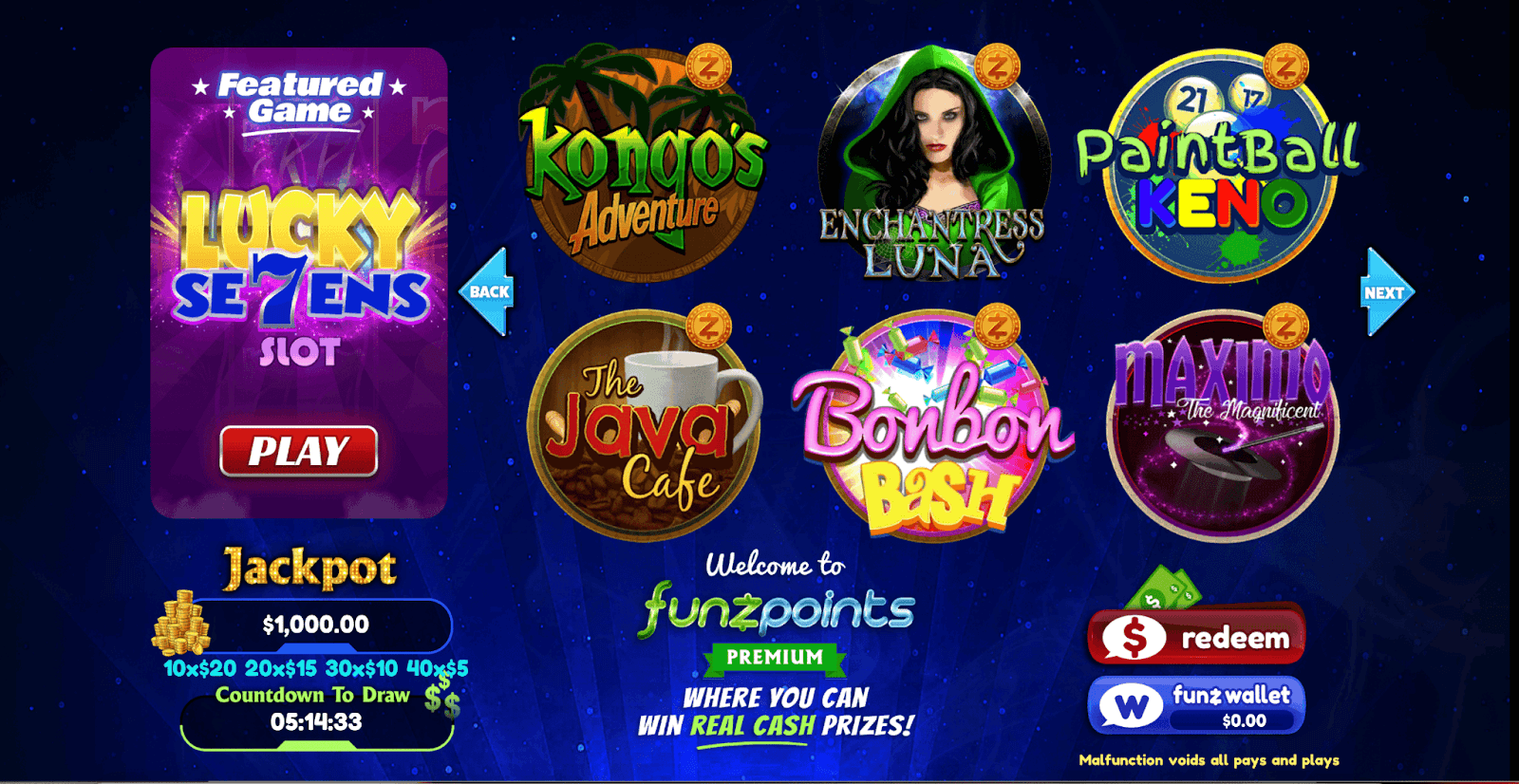 Gold Coins (GC) are the currency for free players to enjoy games in standard mode. Meanwhile, Premium Funzpoints can be redeemed for cash prizes and grand access to premium mode. In premium mode, you can access more games with zero ads.